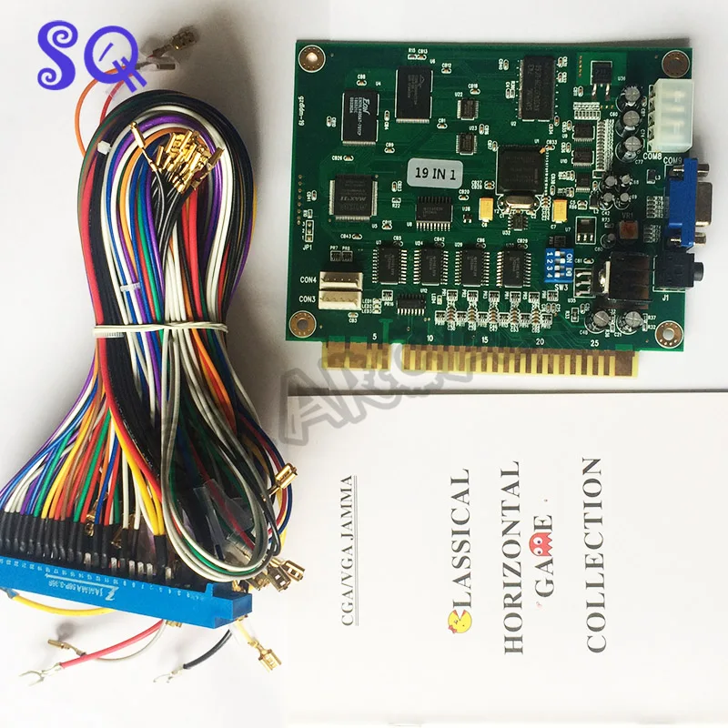 19 In 1 Classical Arcade Games Board Horizontal Jamma Multi Game Pcb Suppotr Cga Vga With 28pin Blue Jamma Harness